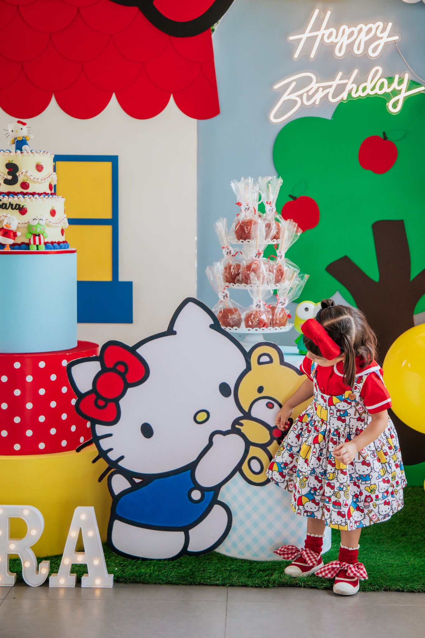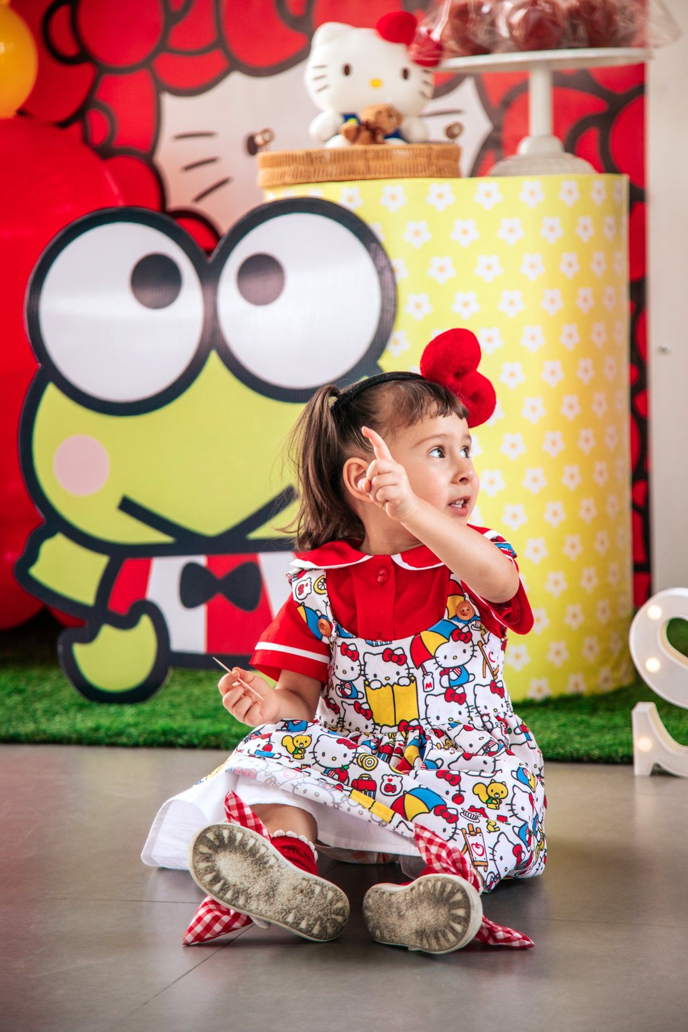 Conjunto de 2 piezas, la primera Una falda de pretina ancha y tirantes, con forro para darle volumen. La segunda una Blusa clásica en color rojo, ambas piezas en tela 100% algodón. Estampado de Kitty para todo fan de este personaje clásico.